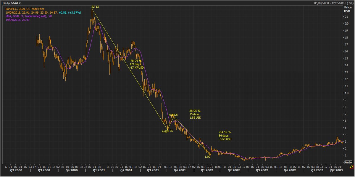En términos de mercado, si se tomaran el trabajo de ver nuestros anteriores editoriales sostuvimos que primeramente venía una caída del 70% en las especies líderes argentinas cotizantes en New York y que luego sobrevendría un gran rebote no menor al 40%. Publicamos estos mismos charts que ven abajo.